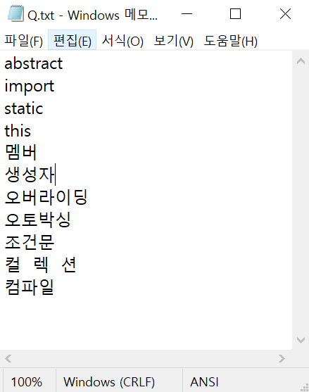 Q.txt파일을 다시 열었을때 리스트에 static이 빠진 것을 확인할 수 있었다.