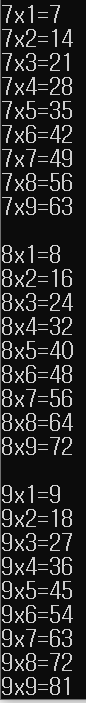 이렇게 구구단을 1단부터 9단까지 구한다고 했을 때